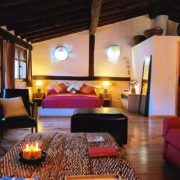 La Cámara es la antigua buhardilla de la casa, con encanto rural romántico que se puede alquilar desde 3 hasta 9 personas en formato dúplex. Tiene el suelo de parquet y las vigas originales, es un espacio tipo loft, amplio y confortable. En el dúplex hay una pequeña pero bonita terraza con vistas al pueblo y al monte.